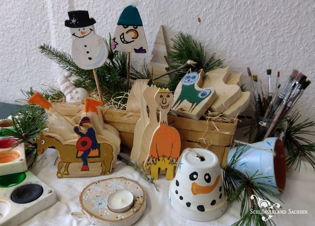 Im Schlosskeller erwartet alle Bastelfreunde am Donnerstag, den 19.02.2026 von 10:00 - 16:00 Uhr das Angebot der Naturstation Weiditz. Unter Anleitung kann ein Jeder eine winterliche Holzfigur oder die geheimnisvollen Putzritzzeichnungen des Schlosses bemalen oder auch eine Futterglocke für Vögel anfertigen.